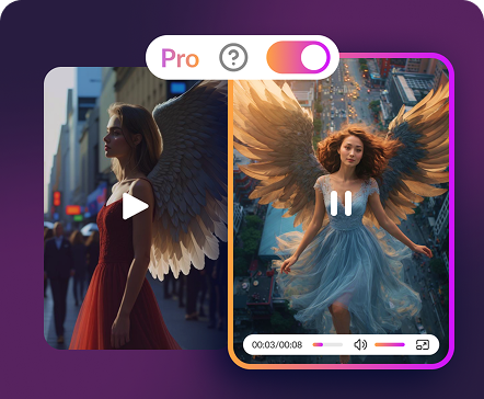 Нужно добиться максимального сходства с персонажем или добавить несколько людей? Для AI нет преград. Загружайте или генерируйте до 3-х кадров, чтобы создать клип по референсам.