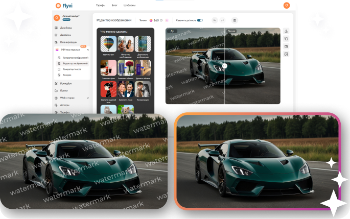 Flyvi – российский сервис. Чтобы использовать нейросеть для удаления водяных знаков, не нужно обходить ограничения.