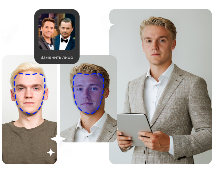 Создайте идеальный портрет для своих социальных сетей, перенеситесь на красную дорожку Каннского фестиваля или вообразите себя на месте популярного блогера на Бали: замена лица нейросетью подходит для реализации любых идей.