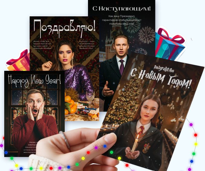 Новый год — праздник, когда возможны любые чудеса. С Flyvi вы сможете творить волшебство сами! Создайте новогоднюю открытку онлайн, которая станет главным сюрпризом для ваших близких и гарантированно поднимет настроение получателя.