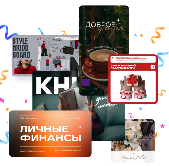 Не знаете, с чего начать? Просто выберите понравившийся шаблон, замените текст, элементы, цвета или изображения на свои и получите готовый контент под любые цели за несколько минут.